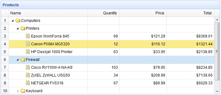 <table title="Products" class="easyui-treegrid" style="width:700px;height:300px"